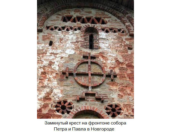 Так точно и в русском христианстве замкнутый крест сохранялся как один из основных символов православия вплоть до никонианской реформы. Самые древние храмы Новгорода, Москвы и Пскова украшены этим знаком.