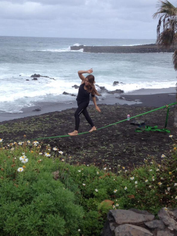 Тут мне стало немного не по себе, что за чертовщина проявляется на этом острове, где на каждом шагу образ застывшести движения. И вдруг вижу чудесную девушку, идущую по канату на фоне бушующего океана и конечно сразу узнала вот он СтранныйАттрактор, вечное движение в попытке сохранить равновесие!