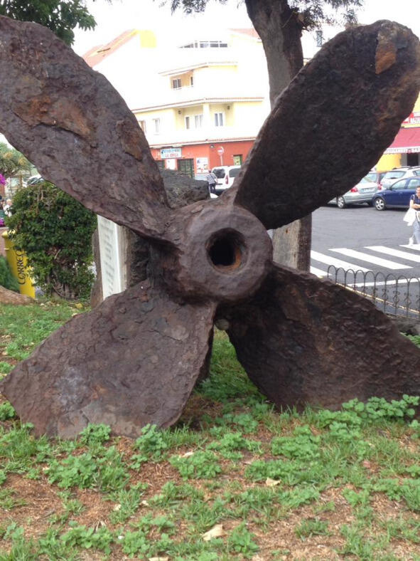 Так и вышла с мыслью о равновесии, наверное поэтому сразу попала в сад равновесия огромное пространство на бушующем волнами берегу из сложённых известным образом камней с инсталляцией, символизирующей остановленную динамику волны из стальной арматуры. Дальше больше упокоенный гребной винт сто лет назад затонувшего норвежского судна.
