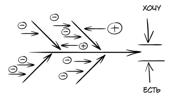 Для поиска причин проблемы существуют разные способы. Вероятно, самый известный инструмент, упоминаемый во всех учебниках по курсу MBA, это «рыбья кость», или диаграмма Исикавы. Не стану рассказывать биографию Каору Исикавы, а вот об этом инструменте пару слов скажу. Проблема изображается на листе бумаги (в правой его стороне) как рыбья голова, в которую упирается позвоночник. Факторы, приводящие к проблеме или усугубляющие ее, отражаются стрелками-позвонками слева направо, к голове-проблеме. В целом все это до безобразия напоминает рыбий скелет. Если при этом есть факторы, нейтрализующие проблему, стрелочки для них рисуются тоже к позвонкам, но «против чешуи», справа налево, от проблемы.