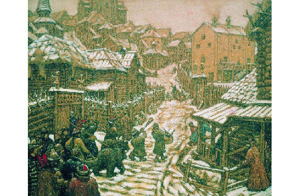 5. «Медведчики» (бродячий цирк с дрессированными медведями) на улице русского города начала 18 в., автор А. Васнецов.
