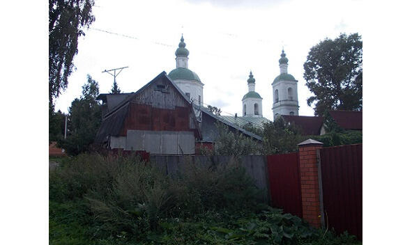 3. Место расположения русского «Гуляй-города» в битве при Молодях, 1115 августа 1572 года. Фото автора. За жилыми постройками виден Воскресенский храм (1703 года основания), при котором, увы, нет стел, плит, других знаков состоявшегося здесь великого события. По свидетельству старожилов, курганы захоронений героев сражения просматривались до 50-х годов прошлого века: после чего были распаханы под посевы свеклы, либо застроены.