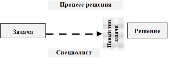 Другое дело, если перед специалистом стоит задача нового типа ничего подобного он ни разу в жизни не решал. Он пытается ее решать, но «упирается в стенку», появляется непреодолимый барьер (рис. 1.2). Специалист не может получить решение потому, что ему не хватает знаний и опыта.