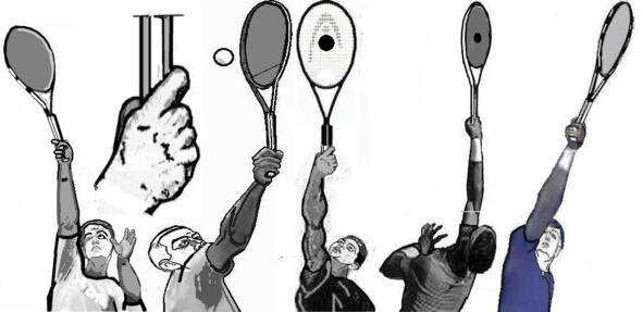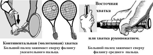 Рис. 4 Хватки ракетки при левом ударе над головой