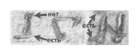 Рис.13. Изображения букв Г, М и П в «Новгородском кодексе»