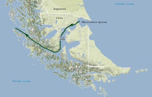 В 1520 г. У берегов Южной Америки буря каким-то чудом пригнала корабли к малозаметному входу в пролив, который ныне носит имя Магеллана.