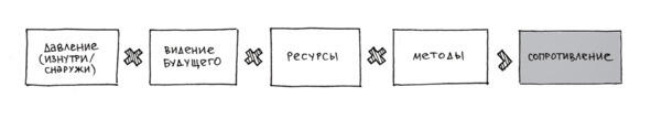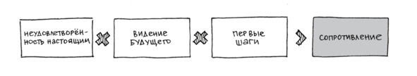 Как же тренеру решить такую задачу? Важно понимать механизм процесса изменения установок и поведения у людей в целом: если произведение трех составляющих неудовлетворенности текущим положением дел, видения возможностей и первых конкретных шагов, которые могут быть сделаны в направлении цели, превосходит сопротивление, то изменения возможны. Такова формула внедрения изменений (формула Глейтчера), которая графически может быть представлена следующим образом: