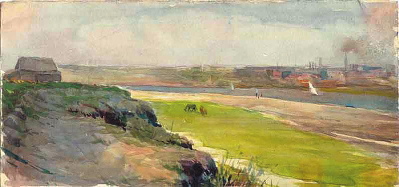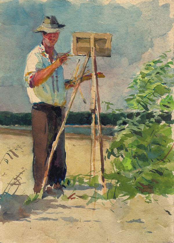 По воскресеньям, когда у отца выдавались свободные дни, мы с ним ездили рыбачить на Омку или на Иртыш (он любил рыбачить). С этой стороны Иртыша всё было застроено, а другой, пологий берег Иртыша стоял совершенно пустой, там, кроме бакенщиков, никого не было. И вот мы туда переплывали на лодке (там немножко заплатишь, и тебя перевезут), закидывали свои удочки, а сами в ожидании, когда дёрнется поплавок, начинали рисовать.