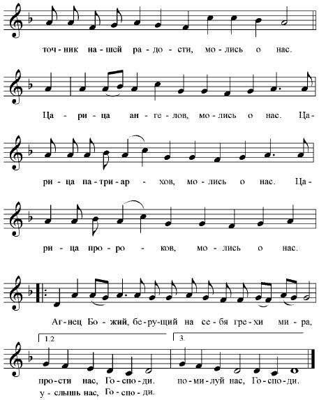 Предстоятель: Молись о нас, Пресвятая Богородица. Все: Да удостоимся исполнения Христовых обещаний. Предстоятель: Помолимся.