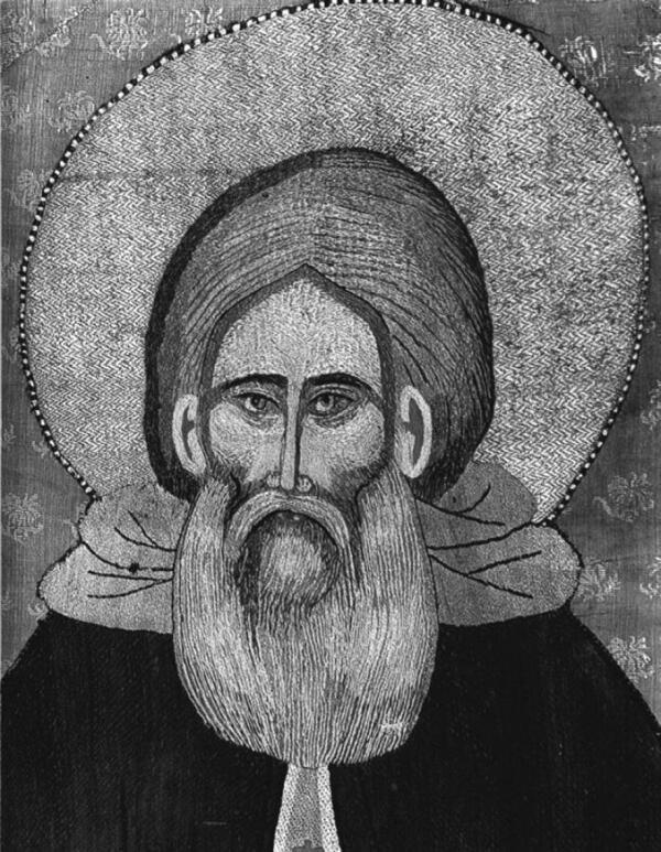 Портретной живописи во времена преподобного Сергия на Руси не существовало. Икона, если так можно сказать, портрет духовный, не передающая в точности изображаемый лик. Предположительно незадолго до кончины Троицкого игумена лик его нарисовал основатель московского Симонова монастыря Феодор, приходившийся племянником преподобному. Возможно, этот рисунок, не дошедший до нас, стал основой шитого изображения Сергия на пелене, наиболее близкому к оригиналу. На нем, как и на иконе преподобного Сергия, написанной, по всей видимости, кем-то из его учеников в XIVXV столетиях, у Сергия близко посажены глаза, а в лике, как тонко подметил писатель Дмитрий Балашов в своем историческом романе «Похвала Сергию», «есть нечто лесное: худоба щек, потаенная, словно спрятанная улыбка, густая шапка волос, видимо, не поредевших в старости. Вглядываясь в это изображение, начинаешь понимать, что праведник мог быть и чрезвычайно строг, но мог и очень по-доброму улыбаться, сохраняя все тот же отстраненный потусторонний взгляд человека, перешедшего грань и взирающего на современников оттуда».