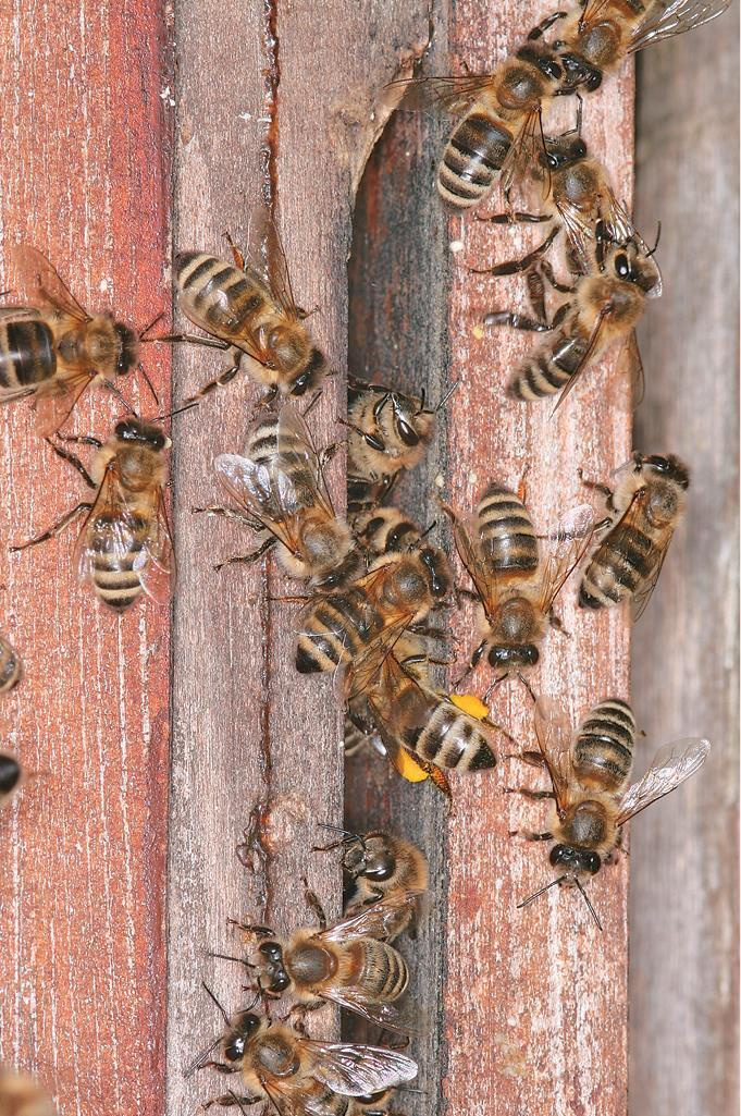 строят соты из воска, который выделяют из особых желез. Они запасают мед и пыльцу в шестигранных ячейках сотов, а также используют эти ячейки как колыбели для потомства