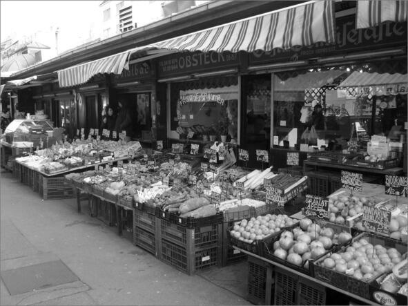 С собой пришлось взять весеннее пальто и сапоги, так как, по словам Фабиана, у них зима не такая холодная. За счёт разницы во времени я прилетела в Вену почти в то же время, что вылетела из Москвы. Фабиан встречал меня в аэропорту с букетом розовых хризантем. Мы обнялись и долго не могли перестать улыбаться, было так здорово осознавать, что глупое знакомство в интернете привело сначала его в русскую столицу, а теперь меня в австрийскую. Он был на машине, и мы сразу отправились на краткий осмотр города. Мы остановились на площади с открытым рынком, где продавали фрукты и овощи, аккуратно сложенные в деревянные коробки с надписями названия и цены, кое-что мне было знакомо, а кое-что я даже по-русски не знала, как называется.