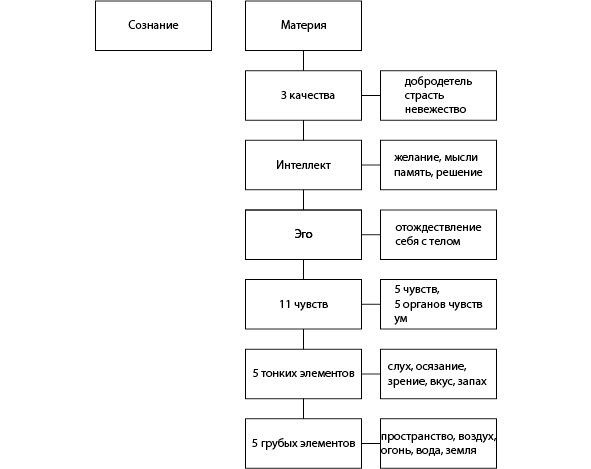 Это разделение на составляющие мы возьмем из сутр санкхьи, учения древнего востока. Оно очень удобно для понимания и включает в себя все категории известные нашему опыту.
