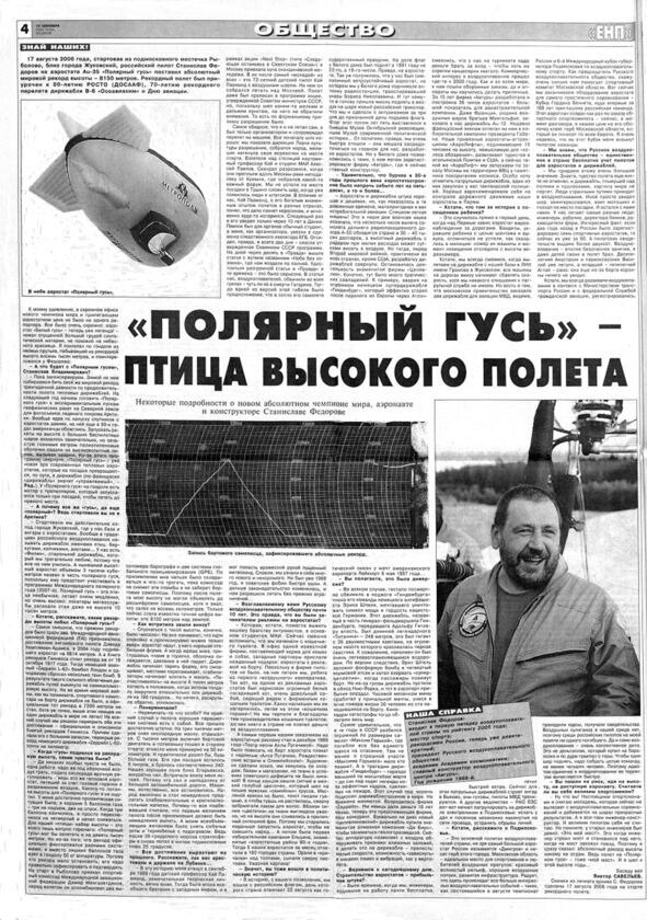 Так выглядит газетная публикация о мировом рекорде высоты, эксклюзивные фотографии для которой журналисту предоставил Станислав Федоров.