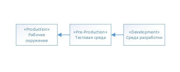 В зависимости от требований бизнеса, уровня зрелости компании и т п в организации может использоваться все три окружения или даже больше. Как минимум должно быть не менее двух сред рабочая и тестовая. Требования к мощности, отказоустойчивости, контролю могут варьироваться от компании к компании.