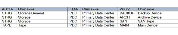 ABCD: определяет ИТ сервис (например, ADDS, DHCP, RDP и т п). Может состоять из трех, четырех символов.