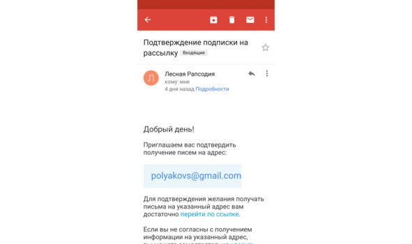 Подтверждение подписки email