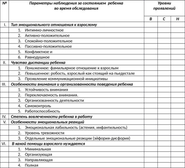Кроме этого, при проведении обследования нужно иметь в виду следующее: если в ходе выполнения задания ребенок пытается отвлечь экспериментатора и поделиться с ним какой-либо информацией, не относящейся к делу, экспериментатор должен вернуть его к исполнению заданий. Если ребенок категорически отказывается выполнять задание (что бывает крайне редко), задание требуется заменить на аналогичное или просто отложить его выполнение на некоторое время.
