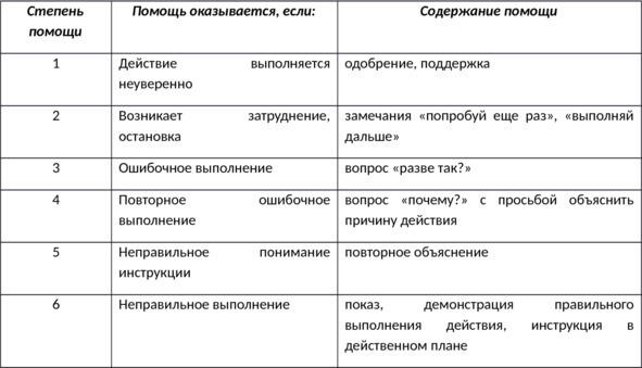 3. При трудностях в выполнении задания ребенку оказывается дозированная помощь для того, чтобы проверить, находится ли исследуемое действие в зоне ближайшего развития, какова обучаемость ребенка, какой вид помощи ему требуется для выполнения действия.