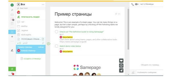 SamePage англоязычный сайт для командной работы онлайн, есть русский язык.. Многофункционален, бесплатный аккаунт позволяет использовать огромное количество инструментов, которых вполне достаточно для полноценной работы. При регистрации подключается ПРО сроком на 30 дней, бесплатной версией можно пользоваться бесконечно.