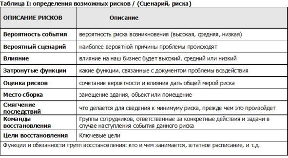 Для каждого бизнес процесса должны быть разработаны «резервный» и «аварийный» планы;