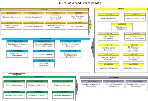 Полноценное управление ИТ сервисами описывается в рекомендациях ITILv3 и CobiT. Основываясь на рекомендациях в книги рассмотрим следующие процессы: