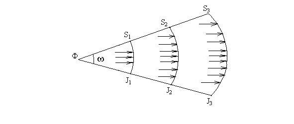 Но это справедливо лишь только в том случае, если мы соберем световой поток со всей площади. Однако S1 <S2 <S3, значит ΔФ1> ΔФ2> ΔФ3 приходящийся на единицу площади.
