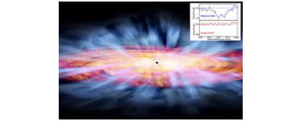 Рис.16 Квазар. Внутри чёрная точка-шаровая область из Света ничего не излучающая, поэтому кажущаяся чёрной, которую считают чёрной дырой