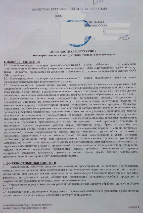 Должностная инструкция