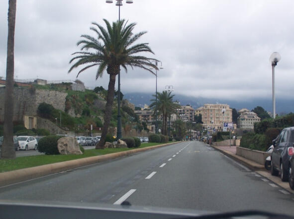 Очень захватывающе наблюдать на скорости за панорамой: многоуровневые улицы внизу и на высоте горных склонов, с красивейшими строениями; пальмы разнообразных видов; Лигурийский залив, бухты, яхты, корабли и всё это под солнечными лучами, пробивающимися, в уносящихся облаках. Так, в динамике в пути, с высоты трассы, в условиях меняющейся погоды, пред нами открылась жизнь неведанного нами ранее старейшего портового города.