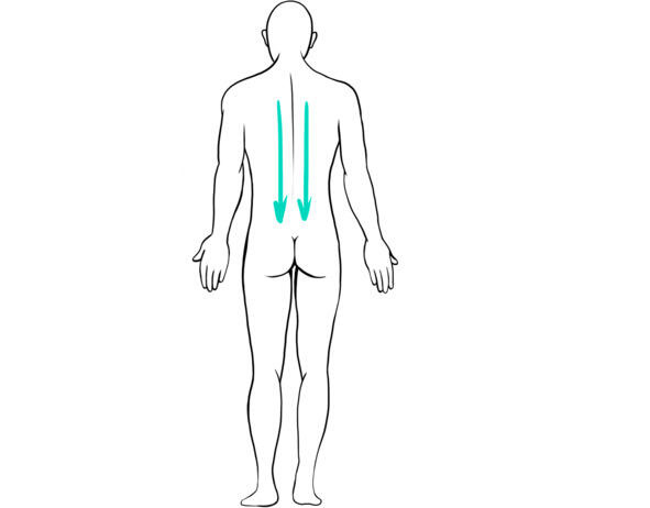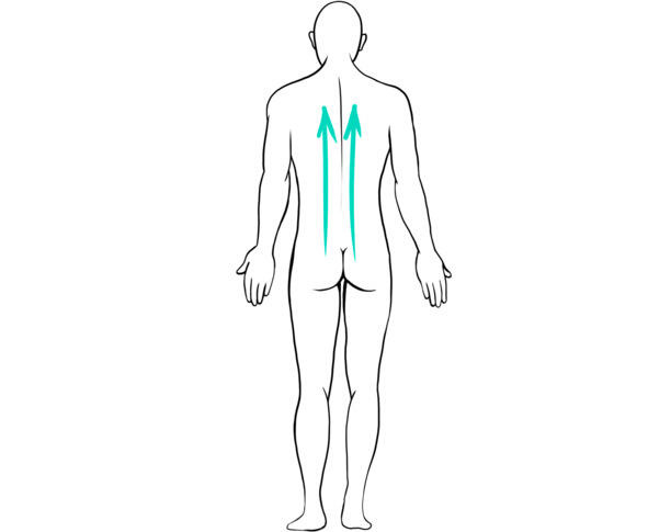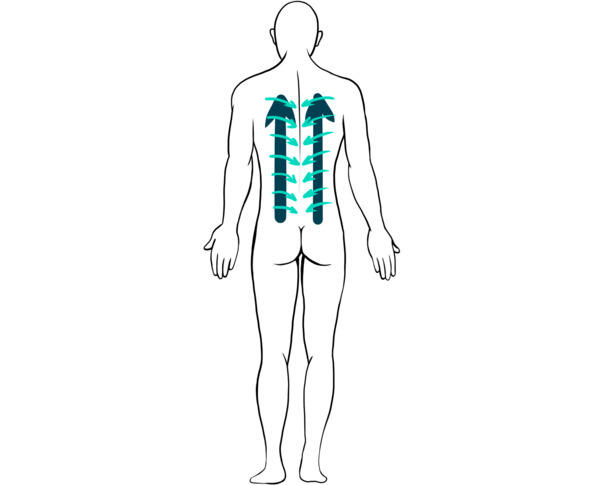 3. Разведя пальцы веером, процессор гладит нервные каналы, используя одновременно обе руки. Делаем симметрично обеими руками поглаживающие движения в направлении от позвоночника к бокам тела. Начинаем с верхней части спины и двигаемся постепенно вниз. Проходим так всю спину три раза.