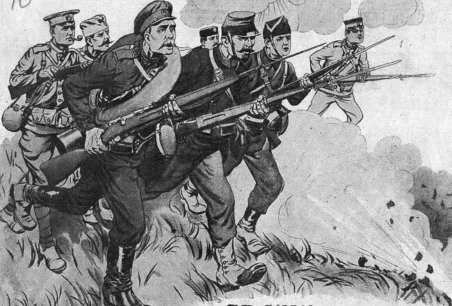 В соответствии с Франко-Русской военной конвенцией 1892 г. Россия должна была выдвинуть против Германии 800-тысячную армию, облегчив ситуацию для французской армии (численностью 1 млн. 300 тыс. человек). Конвенция предусматривала одновременность мобилизационных усилий и взаимопомощь союзников. Главным противником называлась Германия.
