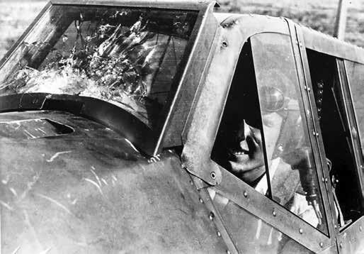 Накладное лобовое бронестекло немецкого истребителя «Мессершмитт» Bf-109F-2 командира 6-й эскадрильи 3-й истребительной эскадры (6./JG3) обер-лейтенанта Генриха Заннемана после попадания пули, выпущенной стрелком советского бомбардировщика. 12 июля 1941 года (источник: http://waralbum.ru/254567/)