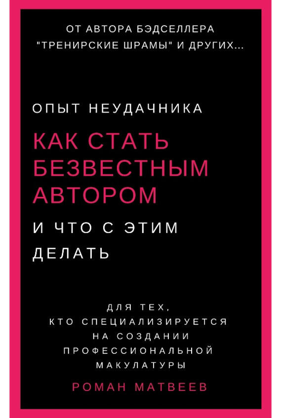 Как видите, первоначально книга называлась «Как стать безвестным автором. Опыт неудачника и что с этим делать». И еще, обратите внимание на информацию в самом верху и снизу: «От автора бэдселлера» и «Для тех, кто специализируется на создании профессиональной макулатуры».
