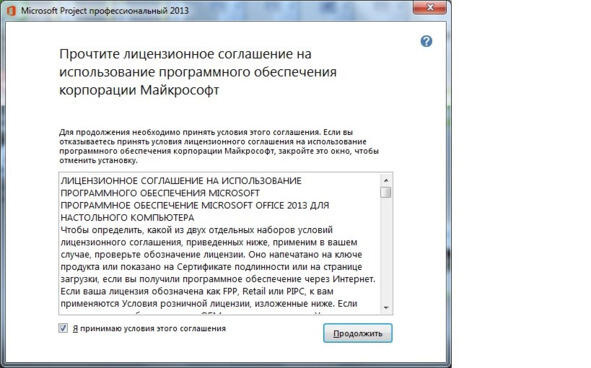 Процесс установки MS Project Professional сопровождается вопросами мастера, где необходимо прочитать и выразить согласие с лицензионным соглашением корпорации Microsoft на использовании программного продукта, выбрать компоненты, которые будут установлены на ЭВМ пользователя, дождаться окончания работы установочного пакета и при необходимости ознакомиться с дополнительными материалами в сети интернет по использованию программного продукта (Рис.4,5,6,7.).