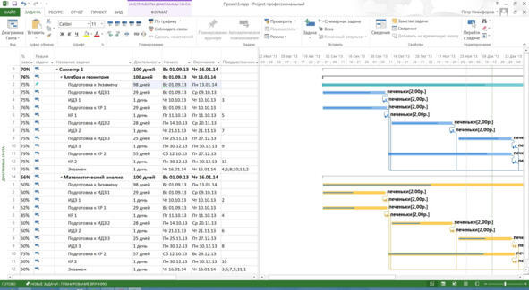 Диаграмма Ганта. Переключение на представление диаграммы Ганта.