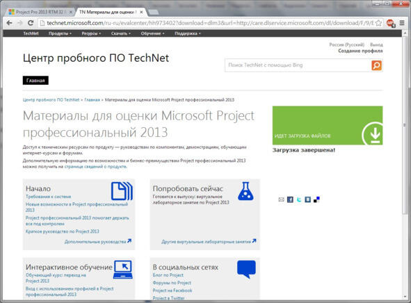 После выбора, загрузки и установки существует возможность ознакомиться с различного рода материалами по управлению проектами, присоединиться к сообществу пользователей Project Professional (Рис.8).