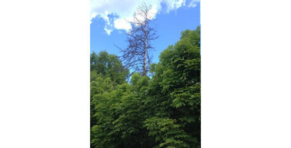 Погодная аномалия в нынешнем сезоне со стойкой прохладой, низкой облачностью и северным сквозняком, создала причудливо комфортные условия для всех, кто имеет листья. На максимуме проявлена интенсивность зеленого в пиковой паузе обновления. Новизна раскрылась, зависнув в свежести и сияет всеми оттенками зеленого. Даже старое засохшее дерево удачно вписано в тотальность цвета, будто надпись на обложке чудного альбома.
