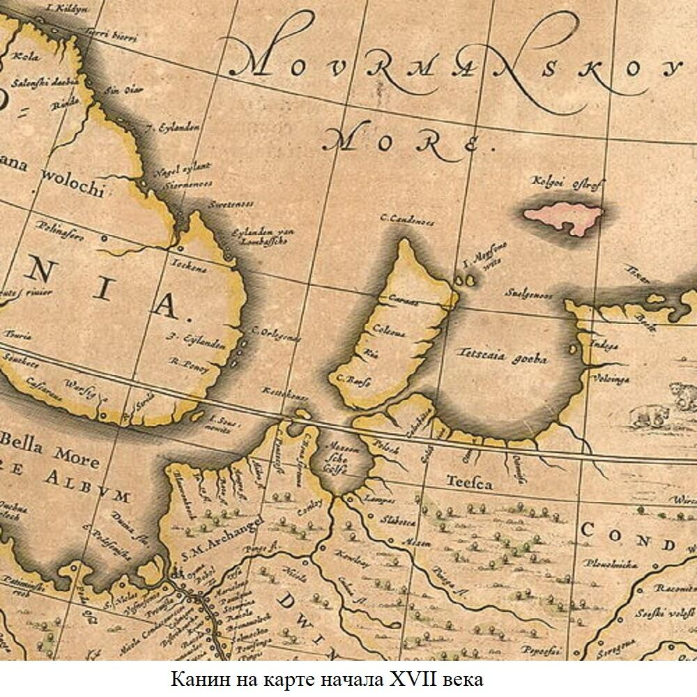 Впервые появился Канин на картах Московии только во второй половине 16-го века, после английских путешествий на поиски северо-восточного прохода, на более ранней карте Московского государства знаменитой карте Герберштейна (1549 г.) его нет.