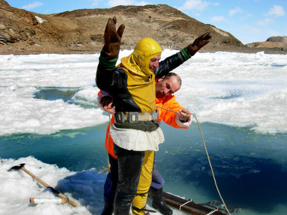 Наша водолазная одежка вызывала гомерический смех у пингвинов и икоту у тюленей. Есть, конечно, отчего. «Садко-2» по сравнению с нынешними, мягко говоря, кое в чем проигрывают. Однако костюмы не настолько плохи, если, конечно, не текут от старости. Во всяком случае, в двух парах верблюжьего водолазного белья, с некоторым опытом погружений, верой в себя и Бога, вы чувствуете внутри достаточно комфортно.