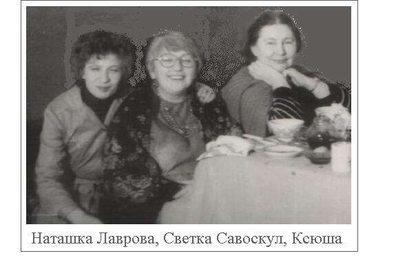 Нас пятеро было четыре дамы: Натка Лаврова, Светка Савоскул, Ксения Павловна Гутионтова, которую мы все любовно называли Ксюшей и Людка Белова я ее тогда еще не знал она в другой лаборатории работала: