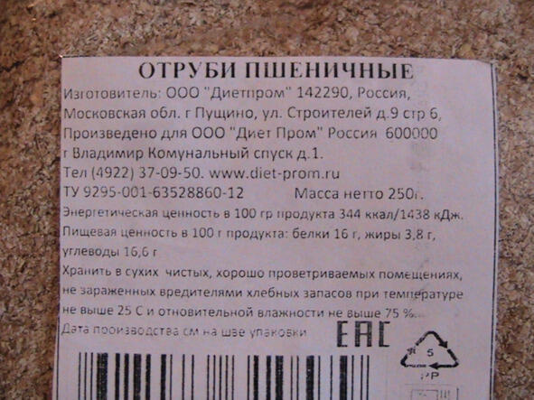 «Вот в такой вот оригинальной и удобной упаковке! Ешь с отрубями обоих видов -на выбор и вкус (или с обоими видами сразу, одновременно), прям чайной ложкой черпай их из упаковки и заедай ими ВСЕ ранее привычные блюда: паштет вприкуску с ними, ешь суп и т. д.»