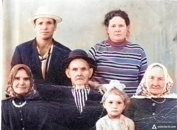 Я и сам уже неоднократный дед, но своих бабушек и дедушку помню. Вот они в гостях у нас в Пятерыжске (скорее всего, в начале 70-х, когда я был в армии) мамины родители и отцова мама, слева которая). Дедушку по отцовой линии я и в глаза не видел он умер очень рано, до моего рождения. А с остальными своими предками, еще дореволюционных годов рождения, успел и повидаться, и пообщаться.