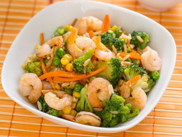 Рис с овощами и креветками