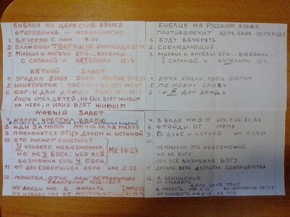 Много раз иереи и иеромонахи предлагали мне благословение на перевод Библии с греческого на русский язык, но Святые Кирилл и Мефодий уже перевели, и нужно лишь суметь научить понимать церковнославянский язык, нам, говорящим на развивающемся русском языке, но не совершать новый перевод, коих сделано много.