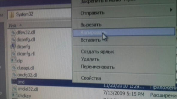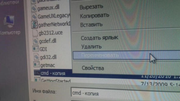 Рис. 21. Выбор переименования файла cmd в sethc.