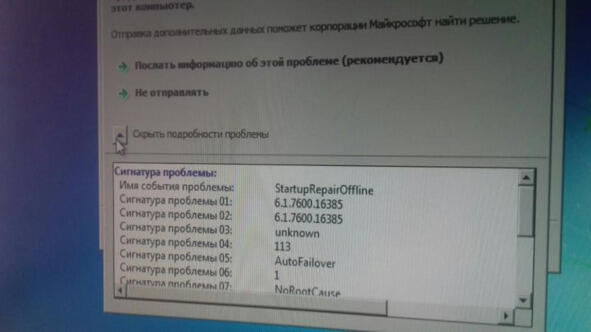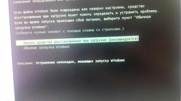 Рис. 1. Варианты загрузки ОС, означающие, что компьютер был некорректно перезагружен.