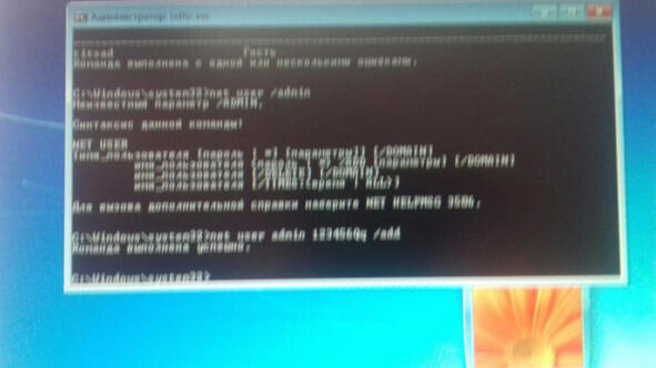 Рис. 25. команда net user admin 123456Qq /add, написанная в командной строке.
