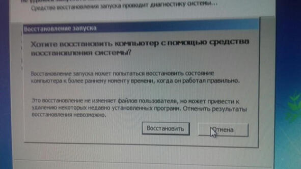 После этого на окне восстановления системы жмём отмену, как показано на Рис. 4.