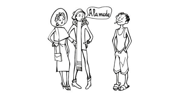 Выражение «а-ля-мод», как и многие другие во французском языке, имеет двойственную природу. С одной стороны, «а-ля-мод» будет все, что вы попытаетесь примерить в магазинах одежды, и услужливый персонал будет восторженно убеждать вас в этом, пока вы пытаетесь втиснуть себя в кофту на два размера меньше или перевернуть надетое задом наперед платье.